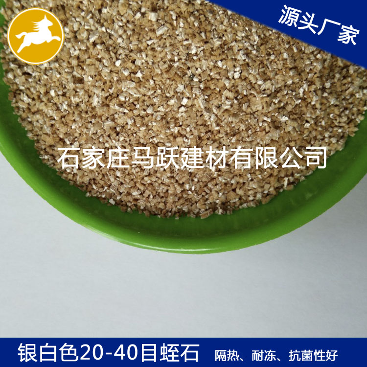 蛭石具有隔熱、耐凍、抗菌、防火、吸水、吸聲等優(yōu)異性能,在800~1000℃下焙燒0.5~1.0分鐘,體積可迅速增大8~15倍,最高達(dá)30倍。膨脹后的比重50-200kg/m3,顏色變?yōu)榻瘘S或銀白色,生成一種質(zhì)地疏松的膨脹蛭石。